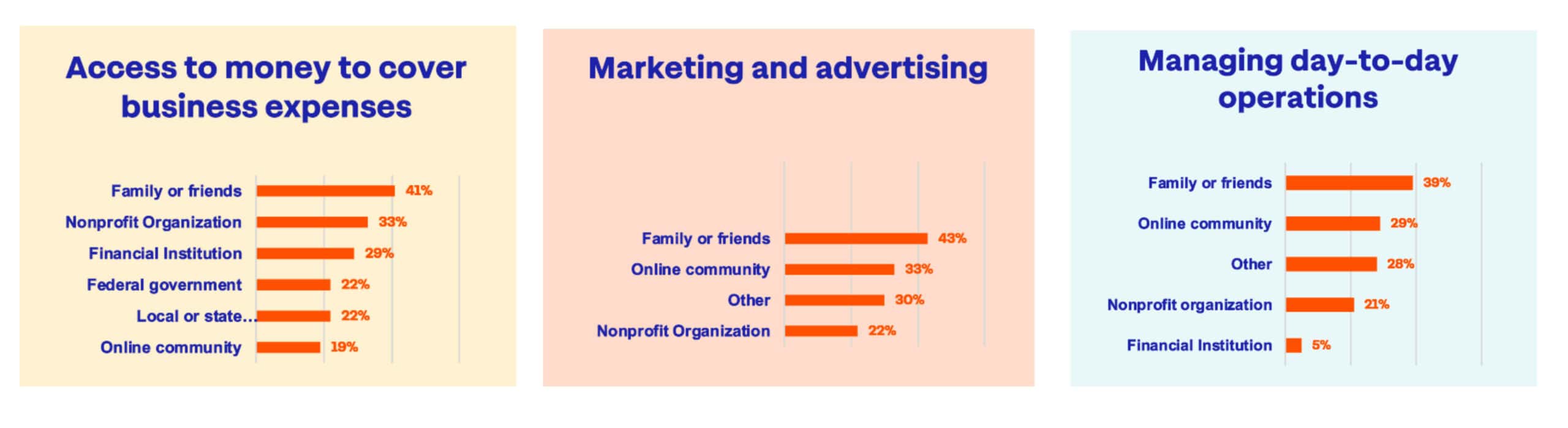 • While Black entrepreneurs are creating jobs and growing their businesses, their full power as engines of our economy remains untapped because of a lack of support. Seventy-six percent said access to capital was a challenge and of those who have never received money for their business, nearly 80% said they either could not find the right support or could not afford to pay for services that would help connect them to capital.